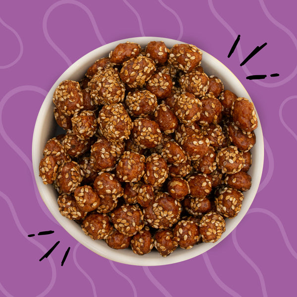 Imagina el delicioso sabor del cacahuate garapiñado, ahora con el aroma y textura del ajonjolí tostado. Crujiente, dulce y con ese toque especial que lo hace único. Perfecto para los que disfrutan los sabores tradicionales con un twist diferente. ¡Una botana elegante, sabrosa y totalmente adictiva!
