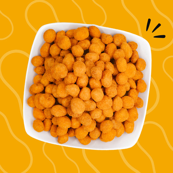 Si eres fan del queso, este cacahuate va a ser tu nueva obsesión. Su cubierta crujiente con sabor cheddar te da esa mezcla entre salado, cremoso y doradito que no se puede dejar de comer. Es sabroso, divertido y perfecto para cuando quieres botanear con estilo. ¡Prepárate para decir “solo uno más”… veinte veces seguidas!